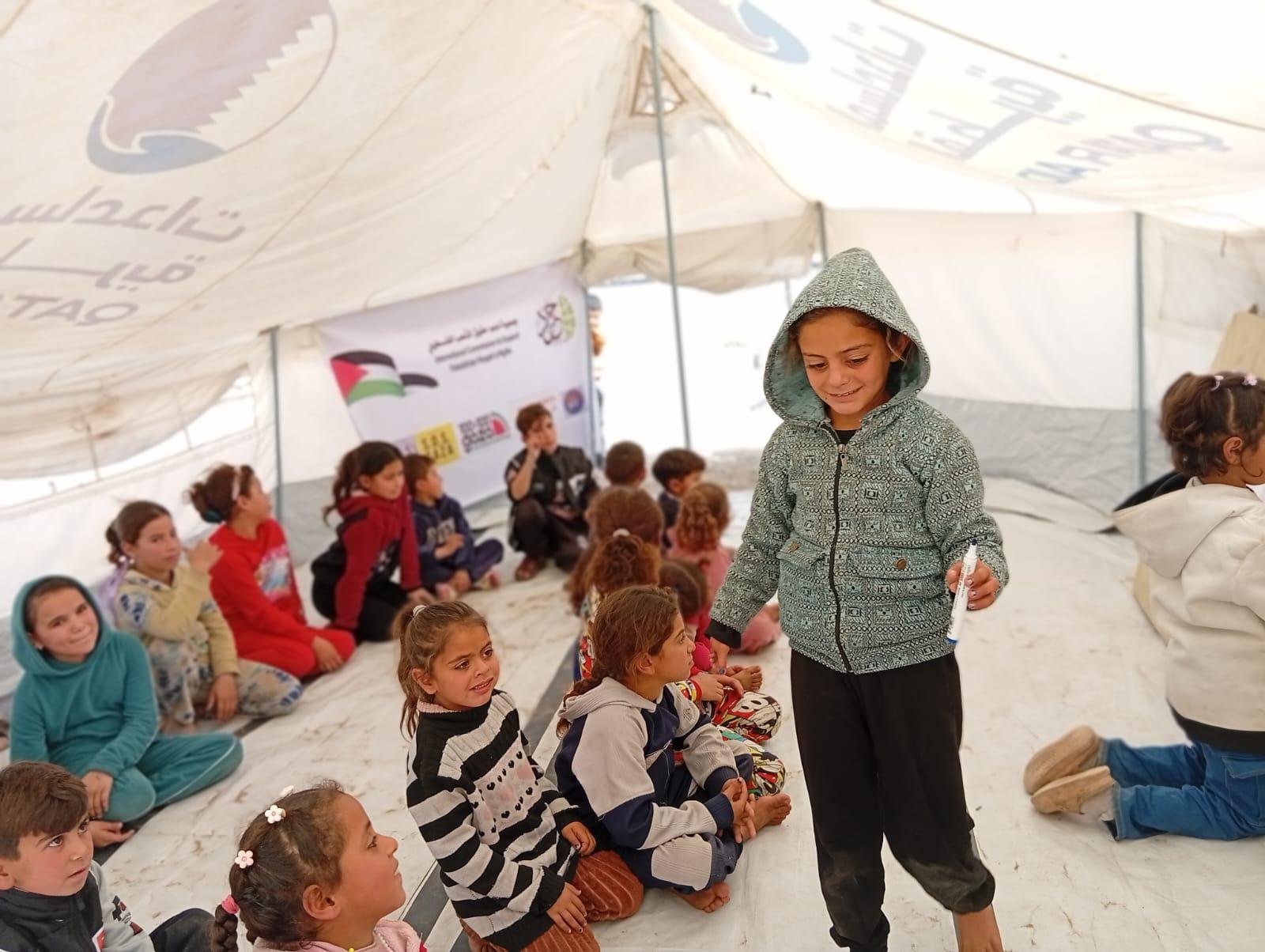 The meeting with the children was facilitated by Ms. Tahrir Abu Arabieh, who delivered the awareness session and supervised the interactive activities.