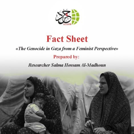 ICSPR affirms that this fact sheet reveals the magnitude of the compounded tragedy faced by women in the Gaza Strip, which goes far beyond numbers and statistics, representing a deep human catastrophe that requires urgent and effective international action to preserve the remaining life and dignity of Palestinian women and girls.