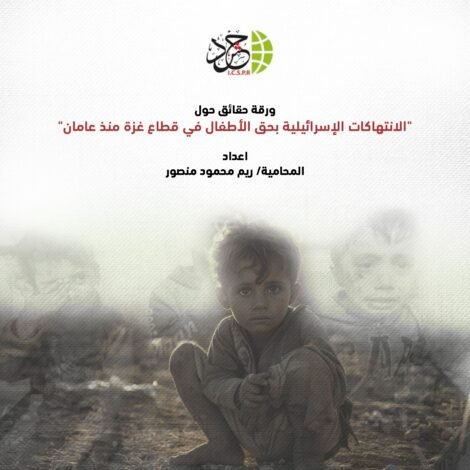 The International Commission to Support Palestinians’ Rights (ICSPR) issued a new fact sheet entitled “Israeli Violations Against Children in the Gaza Strip Over Two Years,” prepared by lawyer Reem Mahmoud Mansour, revealing shocking figures that reflect the scale of the humanitarian catastrophe experienced by children in the Gaza Strip since the outbreak of the Israeli war on October 7, 2023, which the Commission described as the deadliest in modern history against children.